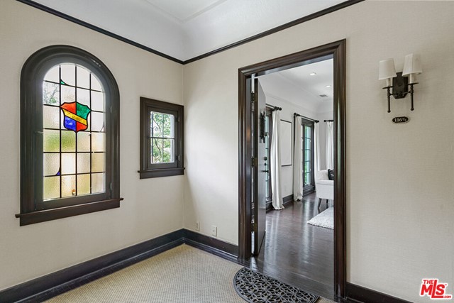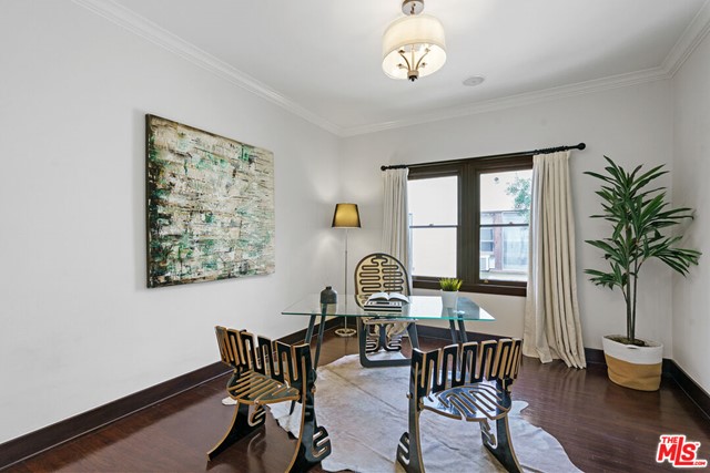 Incredibly rare fully renovated top floor condo in a classic 1927 Mediterranean fourplex, on one of the most picturesque tree lined streets in Los Angeles. A controlled access entrance leads you into the character foyer and grand central staircase with old world details. Enter into an elegant living room flooded in natural light and tree top views from upgraded floor-to-ceiling Andersen windows, with beautiful hardwood floors and custom porcelain decorative fireplace facade. An archway opens to the large dining room and gourmet chef's kitchen with marble countertops, stainless steel appliances and soft close cabinetry. The spacious and light primary suite features a gorgeous en-suite bath and walk in closet. Additional features include a large guest room, charming guest bath, in-unit laundry room, recessed lighting, massive storage closet, a gated parking space with EV charger, a shared guest parking space, central A/C with Nest thermostat and SimpliSafe security set-up. Just moments from LA's best dining, shopping and entertainment.
