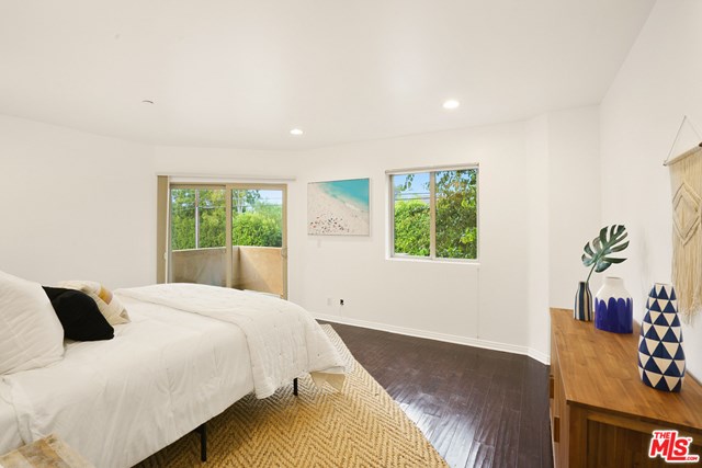 Incredibly spacious, bright and beautiful corner unit condo in the heart of Brentwood. Just 2 blocks to Brentwood Village with some of the Westside's best restaurants, shops, cafes, parks and recreation. As you enter you will immediately notice the grand scale and open-concept floorplan with seamless flow, an abundance of natural light from wraparound windows and tree top privacy. Gourmet kitchen featuring a charming breakfast nook, quartz counter tops and stainless steel appliances. The primary bedroom suite features an oversized walk-in closet and spa like bathroom. Only two units per floor and two tandem parking spaces in secure garage and in-unit laundry. Kenter Canyon school district with easy access to The Getty Center.