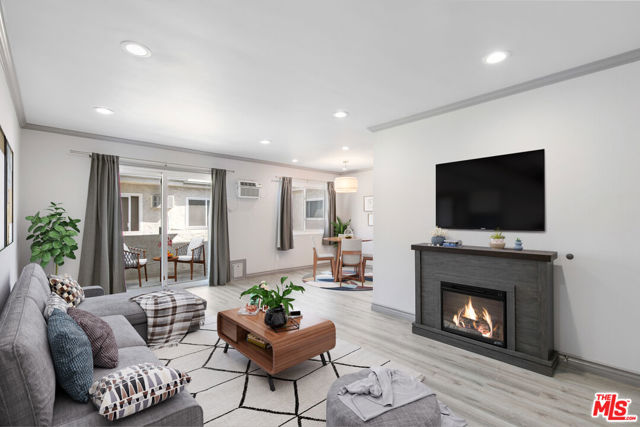 Prime Westside living in this fully remodeled 1 bedroom,1 bath corner unit. The living room offers an electric fireplace, air-conditioning and sliding glass doors that open into a private balcony. The chef's kitchen is equipped with new granite countertops, stainless steel appliances, and ample storage cabinets. The bedroom is roomy and bright, with AC and a large walk-in closet. The bathroom is updated and additional linen storage off the hallway plus another full-size closet off the entry. The Colby Terrace is an 18-unit building with low monthly HOA dues that include water, trash, community spa, gym, sauna, bike storage, new security camera system, and 1 parking spot with additional owner storage. There's a community laundry room and 2 pets are allowed. Close proximity to the library, Sunday farmers market, Sawtelle restaurants and shops. This central location also offers easy access to the 405 Freeway and the Expo line.