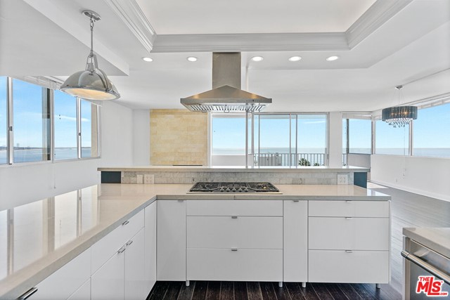Enter this beautiful beach town oasis located in Edgewater Towers. This Palisades gem offers panoramic ocean views from every room. Take in all that sunny Southern California has to offer in a spacious and light-filled open-concept living and dining room that includes a fireplace, wood floors, expansive balcony, and wall-to-wall windows throughout. Enjoy a modern and updated kitchen with stainless steel Thermador appliances, sleek cabinets, self-closing drawers, and a large breakfast bar all while overlooking the California coastline. Step into either of the light filled bedrooms and enjoy spacious walk-in closets and private en-suite bathrooms. Two secure parking spots included. Outside of the unit, Edgewater Towers boasts two salt water pools and spas, private gym, lighted tennis and basketball courts, dog run, and gazebo with barbecue for private under the sun dining. Just blocks way from supermarket with Starbucks or the ocean. This sunny beach haven offers views, views, views that you will have to see for yourself. Don't wait!
