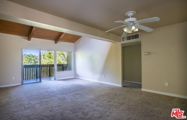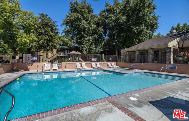 Rare 4 bedroom unit! Upper floor, corner unit located near the center of the complex. Unit features 1220 sq ft, 4 bedrooms, 2 full bathrooms, and central air conditioning! Great floor plan with master bedroom with en-suite bathroom on one side and 3 spacious bedrooms and an additional full bathroom on the other side. Bedrooms are carpeted and have large mirrored sliding wardrobe doors. Enjoy a large kitchen with stainless steel appliances and in-unit stacked washer and dryer. Kitchen has breakfast counter with pass through opening to dining area and large living room with vaulted wood beam ceiling. A sky light and ceiling window bring in even more natural light. Glass slider leads out to private covered balcony. The community has so much to offer including pool, spa, gymnasium, sauna, community room, picnic area, playground, water, gas and trash. Close proximity to the 101 freeway, Ventura Blvd., restaurants, shops, recreation, public transportation, and so much more! Parking for 2.