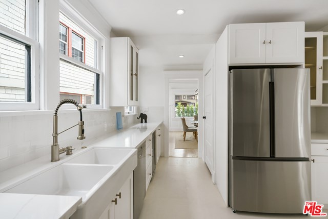 Newly renovated Mediterranean in desirable Mid-City. Sophisticated gated home, oversized rooms w/ modern finishes. Central ac/heat, 10' ceilings, grand staircase, classic built-ins, generous windows wrap the house, enormous 2nd flr balcony, expansive front porch, original white oak, Turkish limestone and Italian marble floors. Entertainers dream, recessed lights throughout, open floor plan w/ three larger, old world living and dining rooms ea. w/ Restoration Hardware chandeliers. Gourmet chef's kitchen, stainless steel appliances, a Forno 8 burner/double stove. Gracious primary suite enjoys a luxurious bathroom, walk in her & his closet plus attached office/additional closet. All 2nd floor bedrooms enjoy walk in closets, Hollywood Hills, Baldwin Hills or tree top views. Bluetooth smart speakers, marble flooring & designer fixtures compliment all spa like bathrooms one with footed soaking tub. Two tiered decks, generous back garden, perfect outdoor entertaining, mature, heavy fruit bearing orange tree. Landscaping perimeter privacy fig hedge, bougainvillea/star jasmine, each plant connected to new Drip Irrigation Garden Watering System. Surprise larger basement provides extensive storage area. Private 3 car garage w/ additional cement foundation for ADU. This Lafayette Park adj. property is LAR3 comes with security cameras.